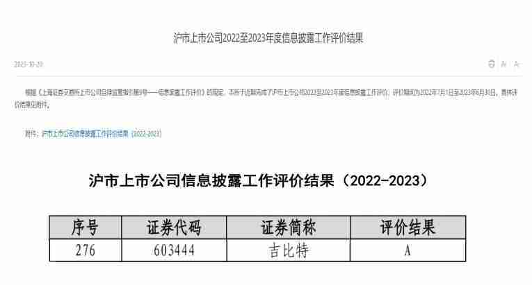 近日,,,上海证券交易所(以下简称“上交所”)发布2022-2023年度信息披露工作评价结果。。1win(股票代码::603444)凭借规范的公司治理、、、、高质量的信息披露以及良好的投资者关系管理再次荣获信息披露工作A级评价,,,,公司连续两年获此殊荣。。。