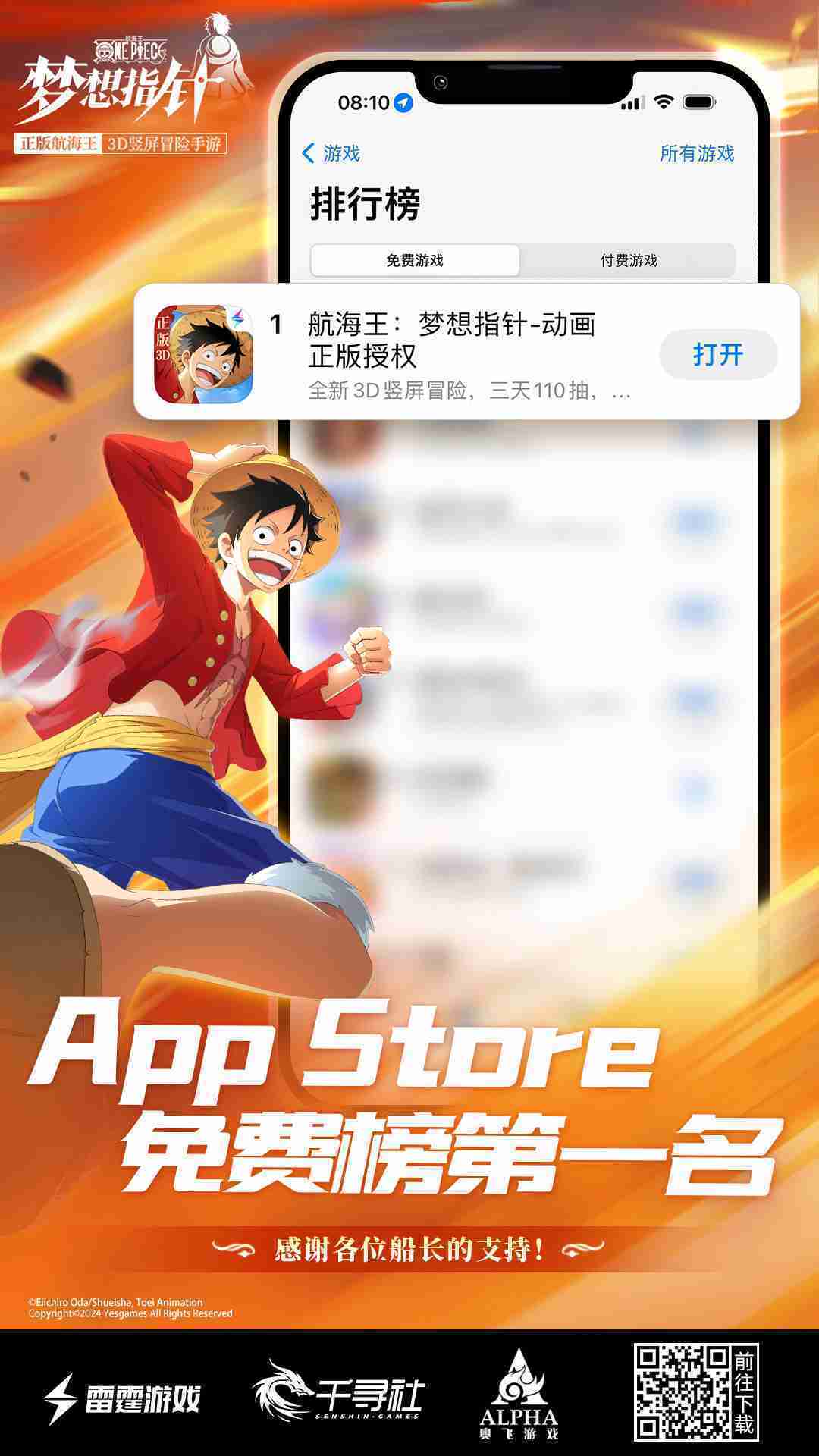 《航海王::::梦想指针》登顶App Store免费榜,,公测福利汇总!!!!
