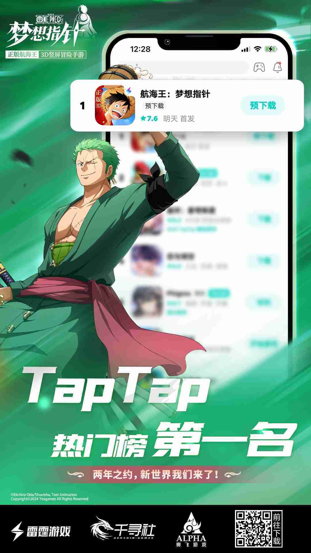 4月1日,,,手游《航海王::梦想指针》正式公测,,上线仅2小时不到就登上了App Store免费榜Top1,,,与TapTap热门榜第一。。。