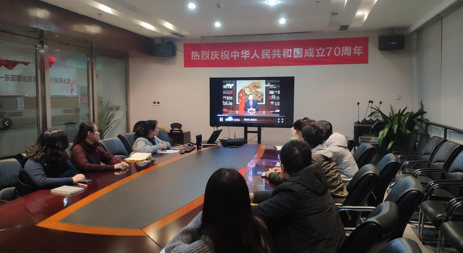 首先,,,,大家共同观看了国家主席习近平发表的2020年新年贺词视频。。。。总书记高瞻远瞩,,回顾了2019年我国所取得的辉煌成就,,,肯定了成绩,,,激励了奋斗精神,,提升了我们的民族自豪感和生活幸福感。。展望2020年,,,大家要深刻领会讲话精神,,,把学习贯彻习近平总书记的新年贺词精神与贯彻党中央决策部署紧密结合,,,,只争朝夕,,,,不负韶华,,严格要求,,,,推动各项工作任务的完成。。。。